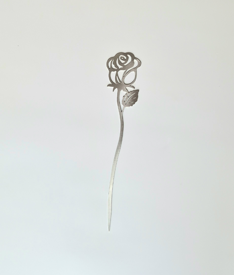 Der Niro-Blumenstecker Rosa von Dorn aus Edelstahl überzeugt durch zeitlose Eleganz.