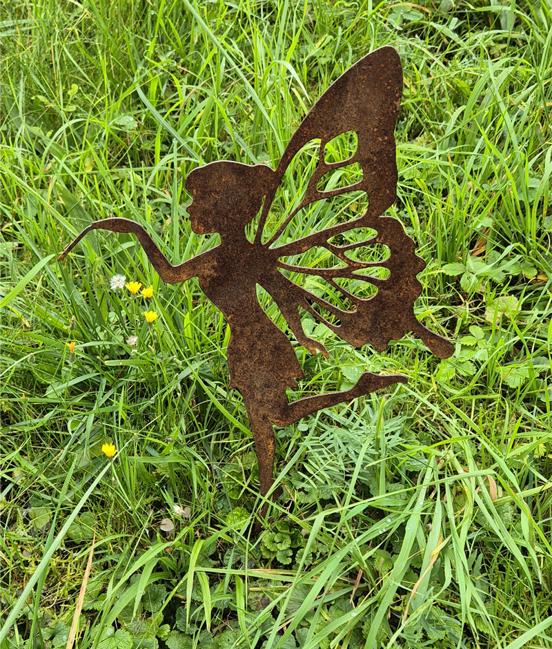 🍂 Gartenstecker Fee Aurelia – Cortenstahl-Deko mit natürlichem Charme